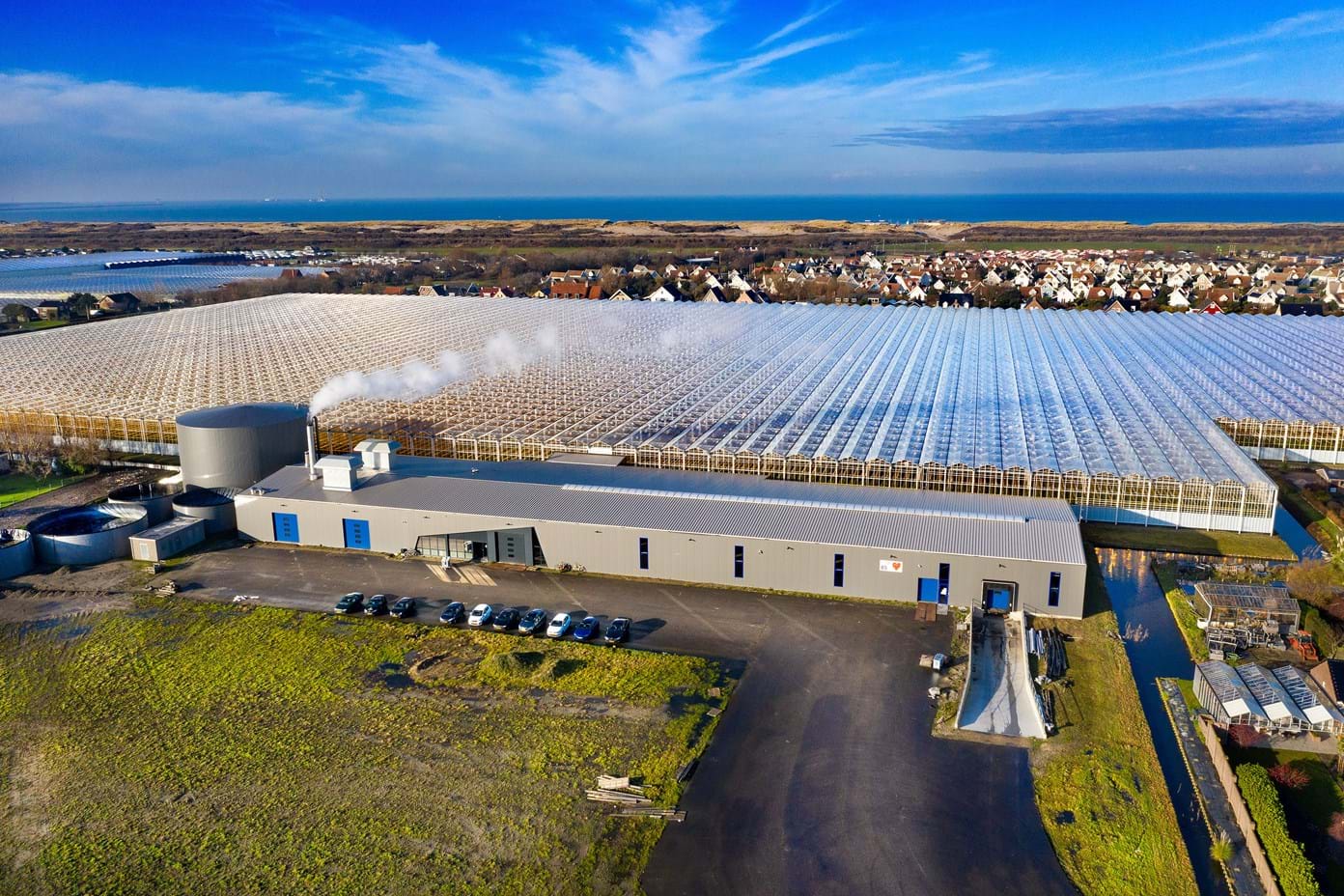 's-Gravenzande. Zodra de kassen stonden hebben wij de schuur aangebouwd. De nieuwe bedrijfshal bevat een verwerkingshal, energie-en watertechniekruimte, kantoor en medewerkersruimtes. -